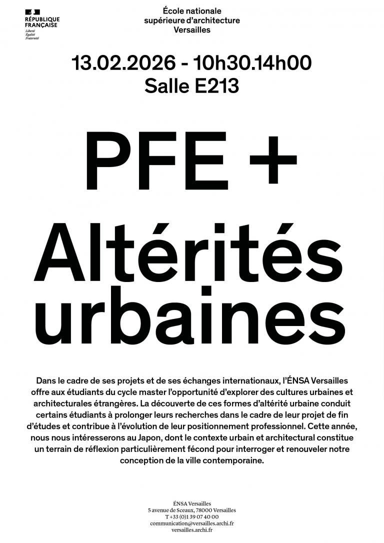 Dans le cadre de ses projets et de ses échanges internationaux, l’ÉNSA Versailles offre aux étudiants du cycle master l’opportunité d’explorer des cultures urbaines et architecturales étrangères. La découverte de ces formes d’altérité urbaine conduit certains étudiants à prolonger leurs recherches dans le cadre de leur projet de fin d’études et contribue à l’évolution de leur positionnement professionnel. Cette année, nous nous intéresserons au Japon, dont le contexte urbain et architectural constitue un terrain de réflexion particulièrement fécond pour interroger et renouveler notre conception de la ville contemporaine.