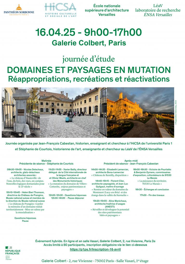 Revivez l'ensemble des conférences données lors de la journée d’études DOMAINES ET PAYSAGES EN MUTATION Réappropriations, recréations et réactivations du 16.04.25.