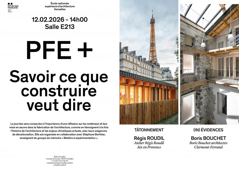 Conférences de Régis Roudil (Atelier Régis Roudil) et de Boris Bouchet (Boris Bouchet architectes) dans le cadre de la Semaine PFE+ 2026