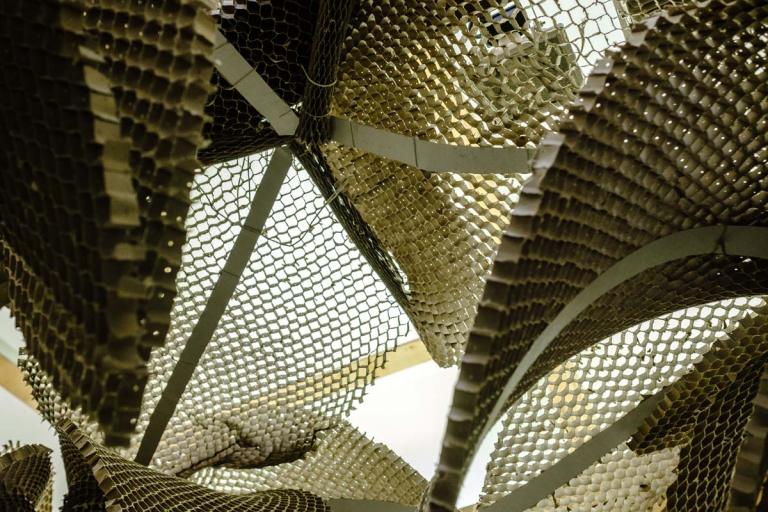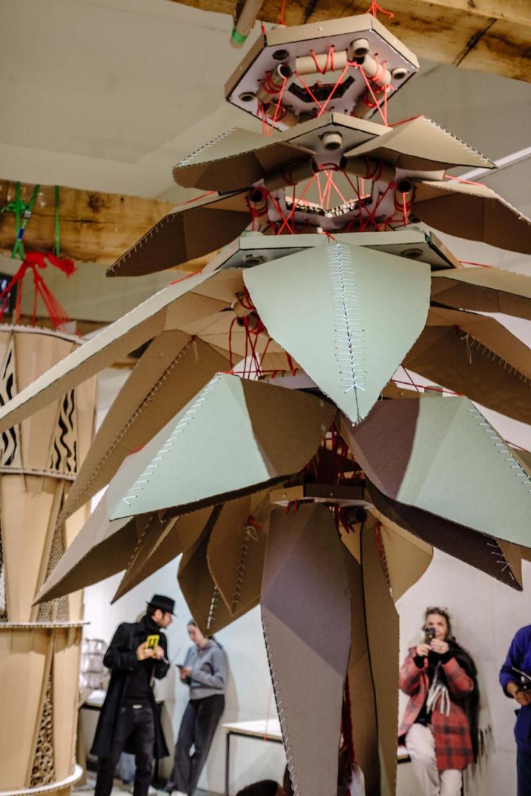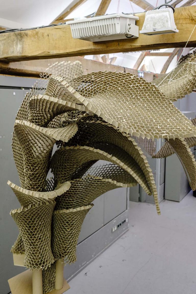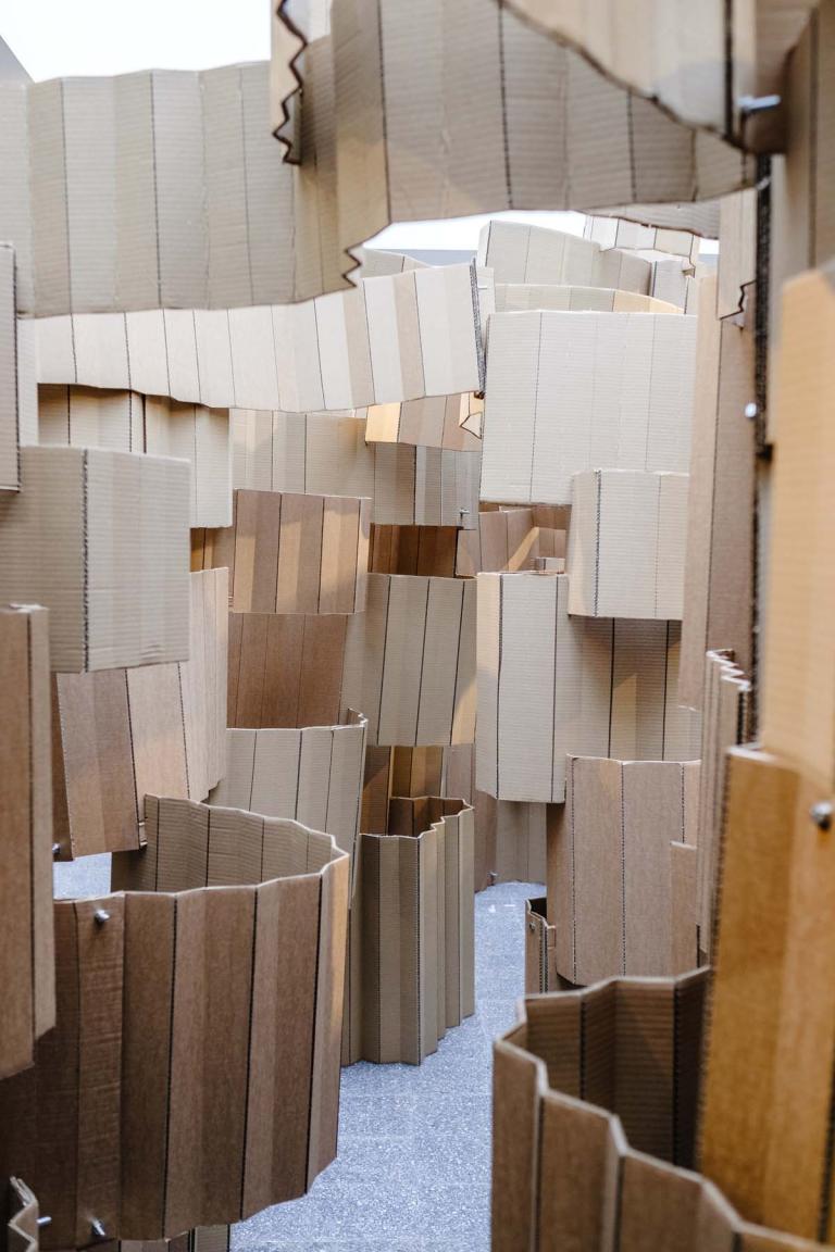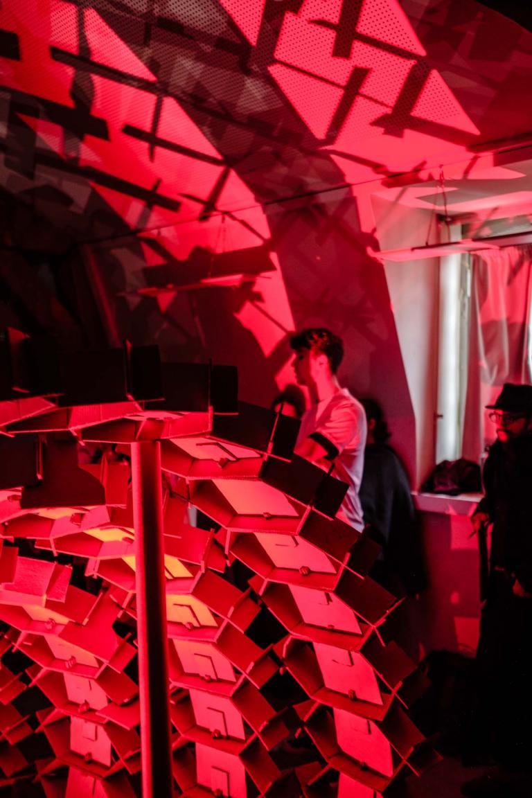 Le studio de projet vise à placer les étudiants dans une situation d’expérimentation de la construction à échelle 1. Il s’agit d’imaginer un petit édifice, d’abord par le dessin, ensuite par la maquette, puis de le construire à échelle 1 avec des tubes de cartons. Ce petit édifice, d’environ 5 m2 au sol et 4 mètres de hauteur, doit accueillir 4 à 6 personnes. Avec une initiation à la conception et à la fabrication numérique, ainsi qu’à la construction pratique, les étudiants acquièrent très rapidement des connaissances concernant les possibilités techniques et esthétiques du tube de carton – coupes et modes d’assemblages, tout en imaginant des volumes et des formes complexes. Cet apprentissage de la conception à échelle 1 permet aux étudiants de percevoir et d’expérimenter réellement les notions de base de la conception à la construction, avec une articulation immédiate, voire intuitive, entre la pratique numérique et la pratique manuelle, ainsi que le corps à corps avec la matière : la spatialité, la forme, la structure, les techniques constructives, la résistance des matériaux, les contraintes du contexte.
